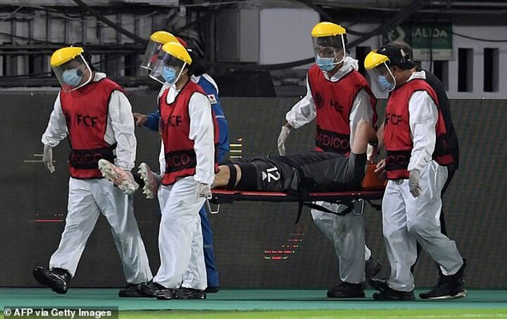 The former Arsenal star, playing just his second game for his country in their 2-2 draw against Colombia, went up to claim the ball under a challenge from Everton defender Yerry Mina but landed on his head just before half time.