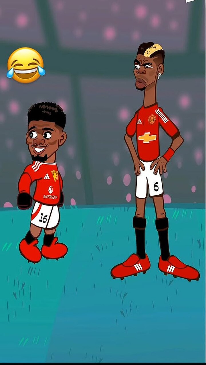 On Monday night, Pogba shared a puzzling cartoon of him and Amad Diallo stood alongside each other in Manchester United shirts.