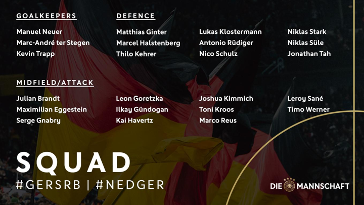 Germany have announced their squad against Serbia and Netherlands.Reus, Sane and Gundogan included.