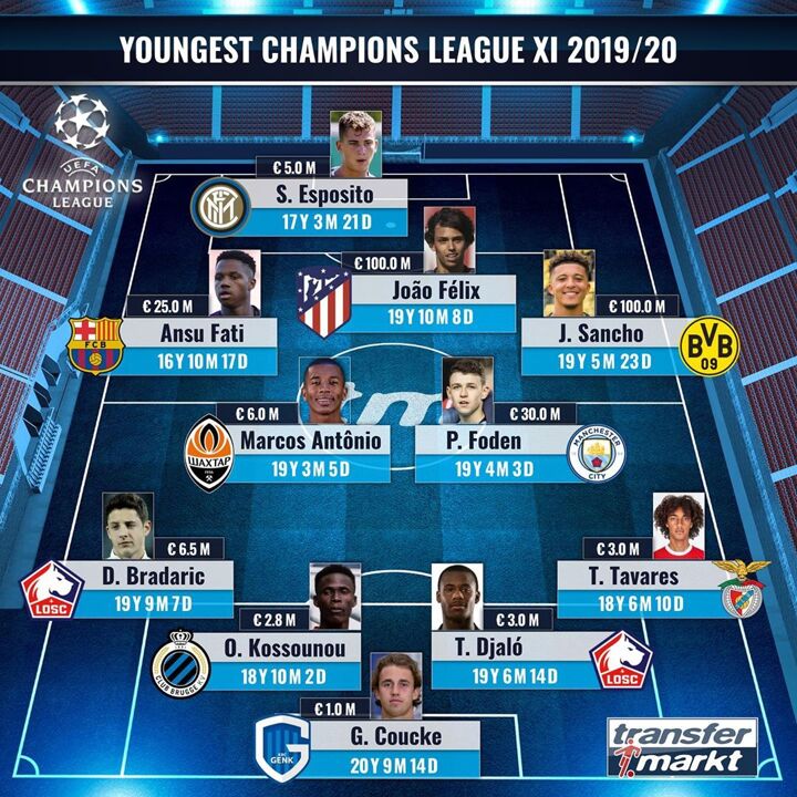 Fati, Foden, Felix and Sancho lead 2019/20 youngest Champions League XI, 17-year-old Inter striker Esposito included. Copyright Declaration