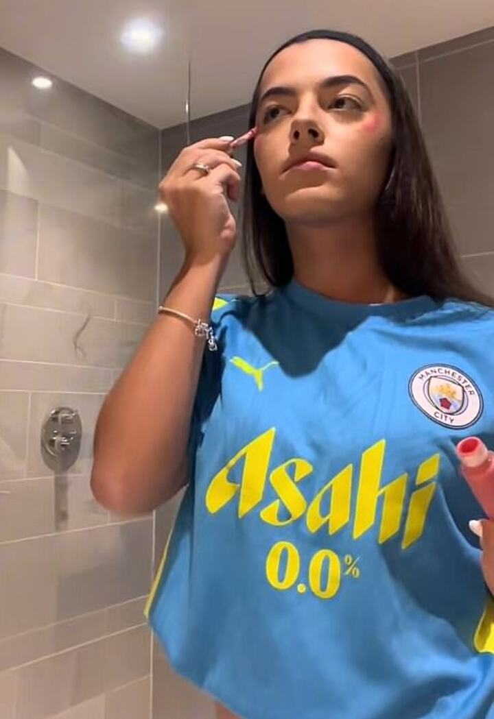 Even though the Brazilian did not make his debut, his partner shared a TikTok video of her preparations ahead of the game as she was wearing the Cityzens' shirt.