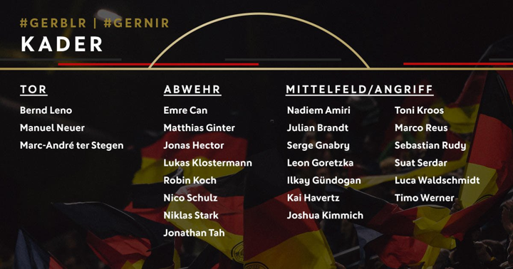 Germany have announced their squad for Euro Qualifiers as Werner, Reus, Kroos & Can in.