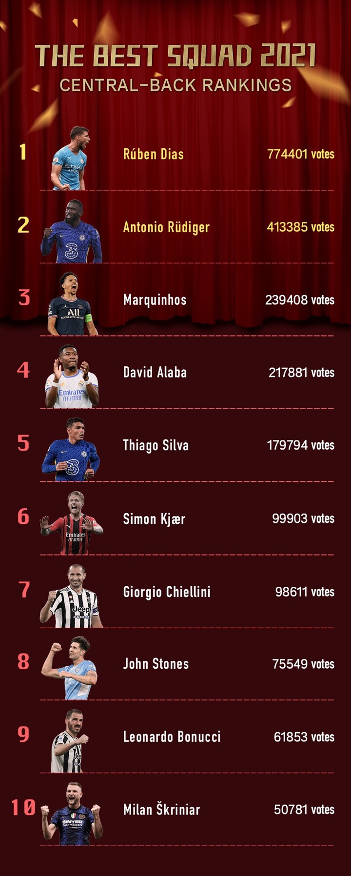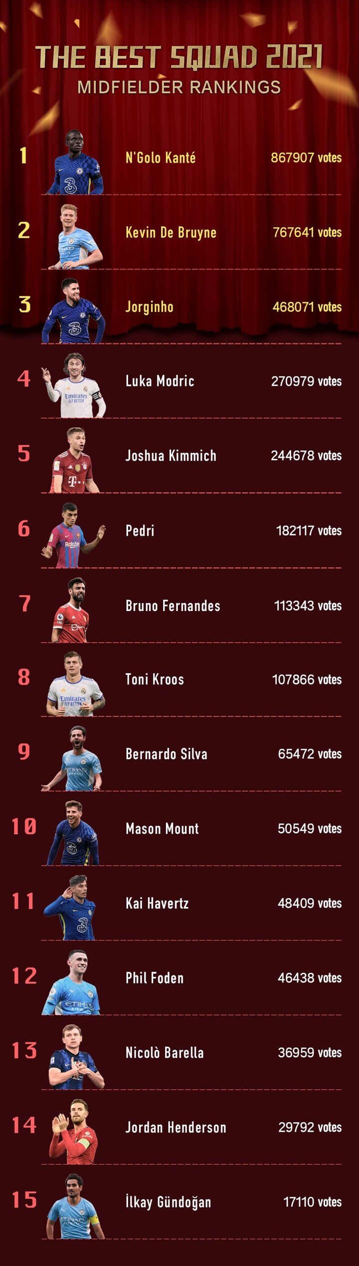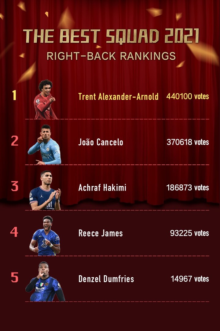 Votes were cast by 1, 863, 632 fans in the All Football Best Squad of 2021 poll with players from the English Premier League dominating the final XI.