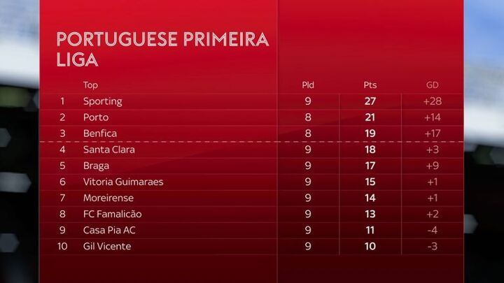 Sporting have a 100 per cent record at the top of the Portuguese league this season having won all nine games scoring 30 goals and conceding just twice.