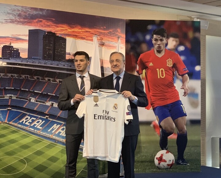 El joven jugador malagueño (19 años), por quien el club blanco ha pagado al Manchester City 15 millones más cinco en variables, pasó el reconocimiento médico a primera hora de la mañana, posteriormente se trasladó al Bernabéu para estampar su firma en el contrato que le unirá al Madrid hasta 2025, visitó el museo y se fotografió con las 13 Copas de Europa. A continuación, entró en el antepalco del estadio para una puesta de largo en la que estuvo rodeado por su familia. El acto se abrió con la emisión de un vídeo que recopilaba los mejores momentos de la carrera de Brahim; después, tomó la palabra Florentino Pérez.