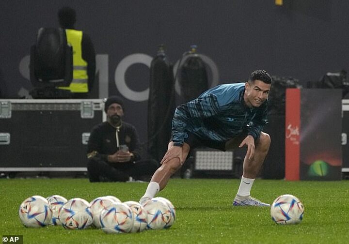 And Ronaldo was snapped getting stuck in to training work with his new team-mates, despite potentially not being allowed to make his Al-Nassr bow until January 22..