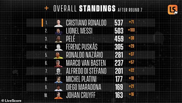 But it isn't enough to knock Ronaldo off top spot in the final reckoning with the formula suggesting he truly is the GOAT.