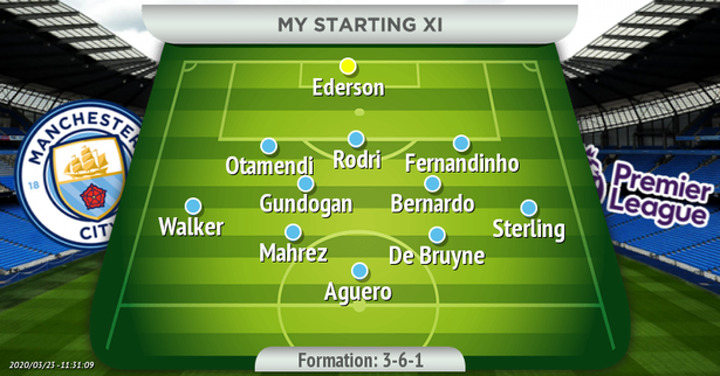 Using the same 3-4-2-1 formation as previous, Walker has to join Rodri and Fernandinho at the back shielding Ederson. Mahrez and Bernardo then serve as the wide players with Gundogan, Bernardo, De Bruyne and Silva the four central midfielders serving Aguero up front.