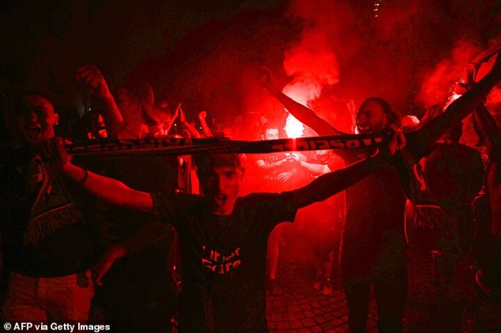 The scenes follow from events in Paris where PSG ultras gathered outside the Parc des Princes stadium to cheer on their team from afar, while 5,000 fans watched the game from inside the ground.