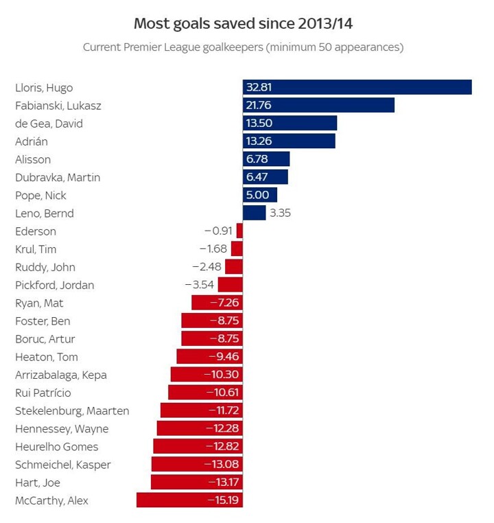 This season alone Lloris has conceded only nine goals when the statistics suggest that the average goalkeeper would have been expected to let in around 15 from those shots faced.