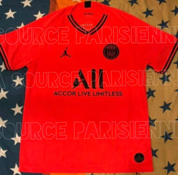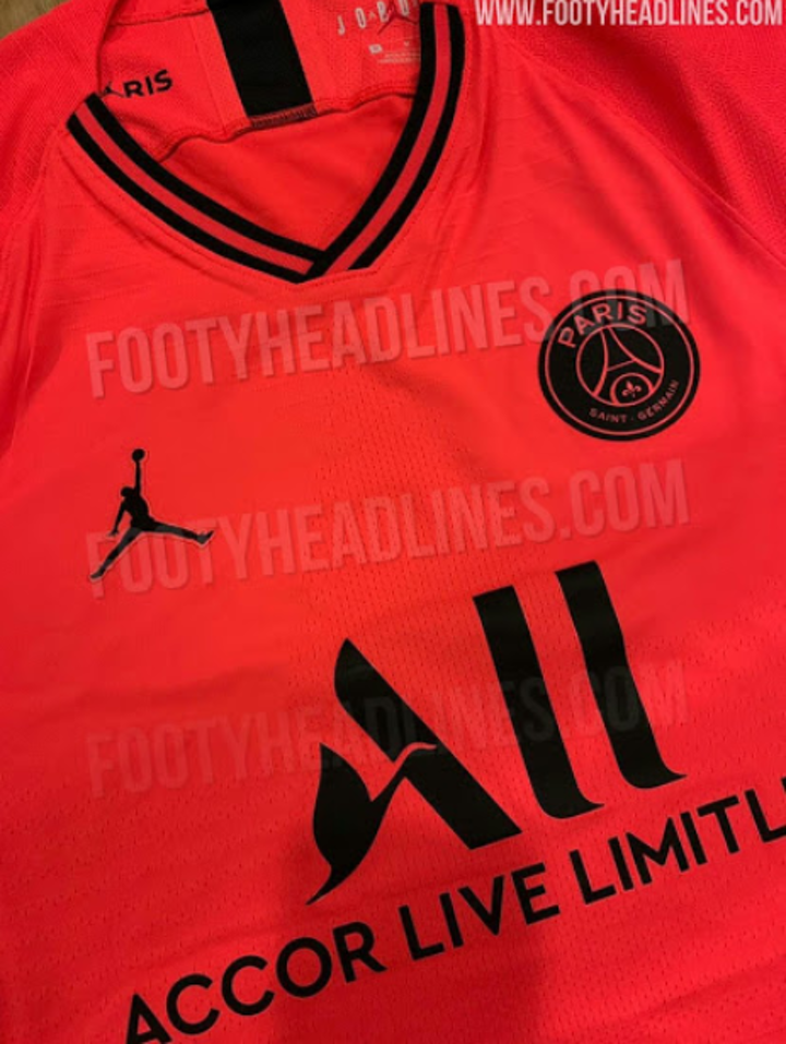 The PSG 2019-20 away kit is made by Jordan. Whereas last season's two Jordan Champions League jerseys are rather understated, the Paris Saint-Germain 19-20 Jordan away kit is as bold as it gets, featuring the bright and saturated 'Infrared 23' as base color. It will be released on July 26th.