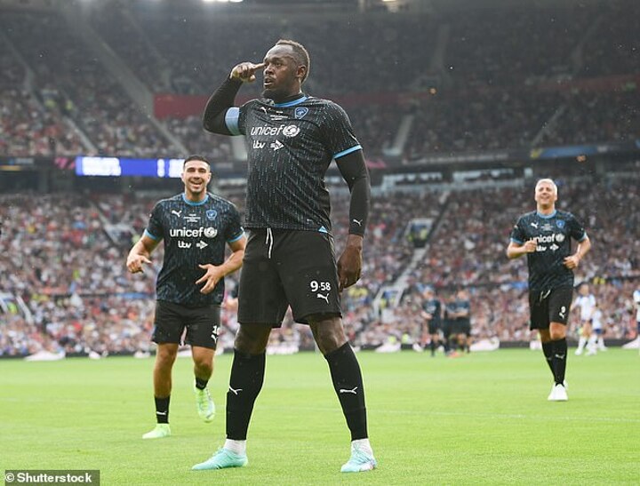 Bolt pulls out Rashford's celebration after opening the scoring in Soccer Aid