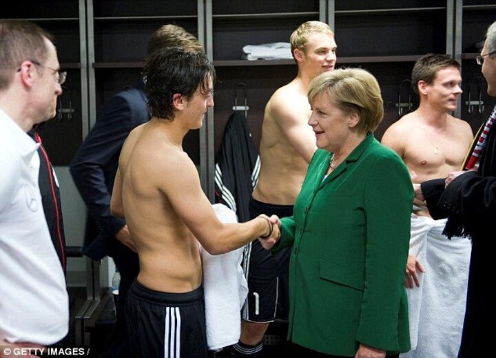 As he established himself as a regular under Joachim Low in the following years, Ozil also became a symbol for the success of the DFB's work on integration issues. In 2010, after scoring against Turkey in a 3-0 victory in Berlin, Ozil was famously photographed, topless, shaking hands with Angela Merkel in the German dressing room.