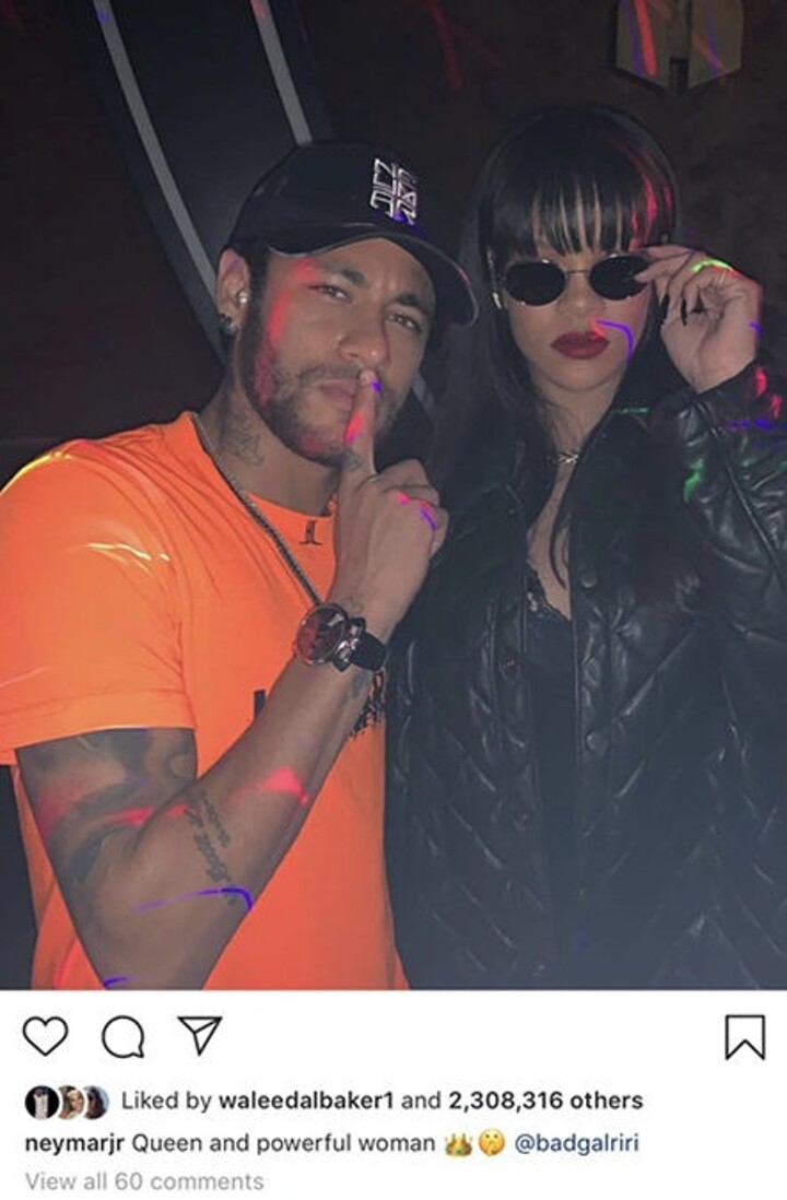 Neymar showed he can work hard and play hard as he enjoyed a night out with singer Rihanna.