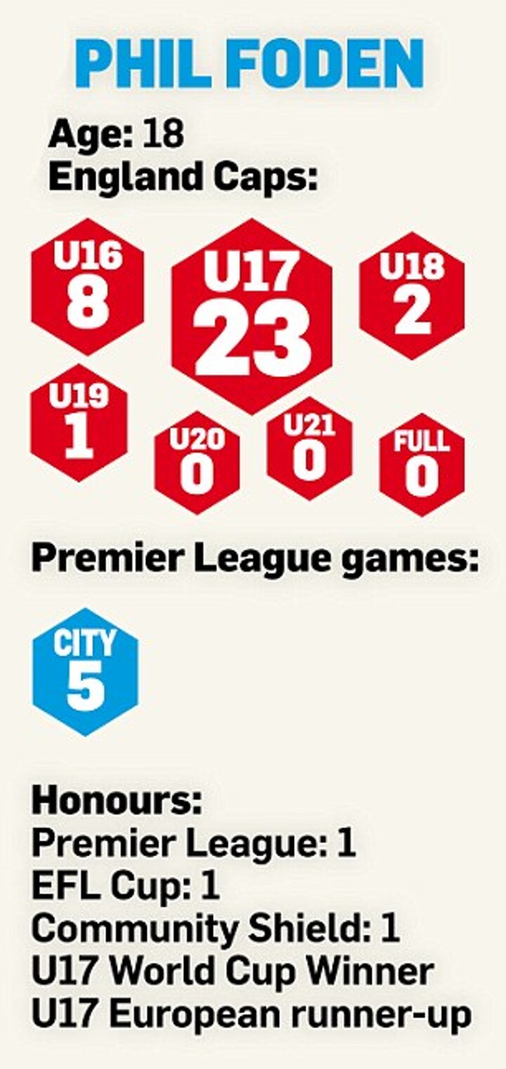 But even Foden has the capacity to surprise them. Now 18 and winner of the Golden Ball at the Under-17 World Cup which England won in India last autumn, Foden is already pushing for a first-team place against Huddersfield on Sunday, sooner than even his admirers expected.