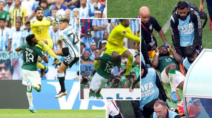 Saudi Arabia defender Yasser Al-Shahrani was stretchered off after a sickening collision with his own goalkeeper at the end of the incredible 2-1 win over Argentina.