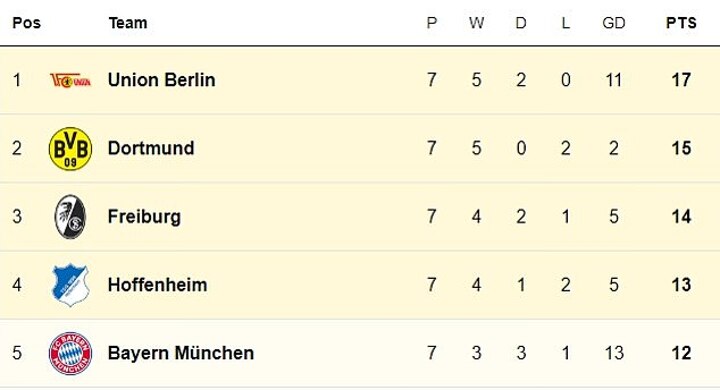 The only team in Germany's top-flight to still be undefeated, they're two points ahead of Borussia Dortmund.