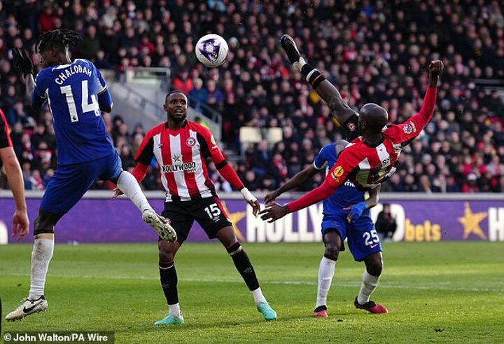 Yoane Wissa scored a stunning bicycle kick to give Brentford the lead against west London rivals Chelsea.