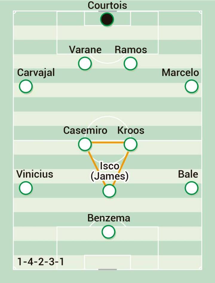 There was room for Isco and James in this formation and included Benzema as the intermediary between midfield and Jovic.