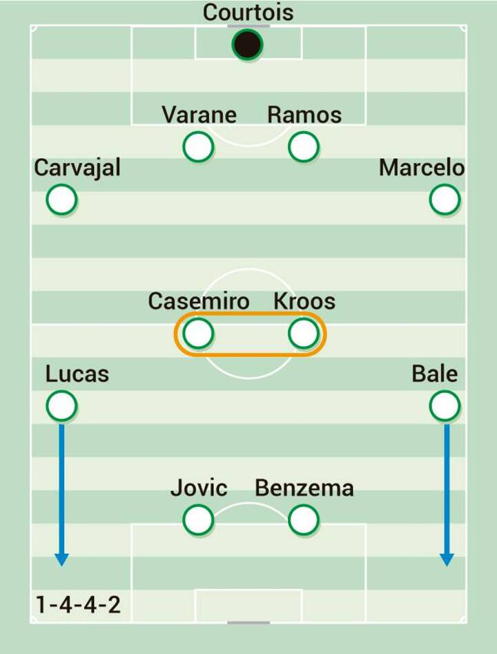 This was the system deployed in the game against Celta, until the sending off of Modric.