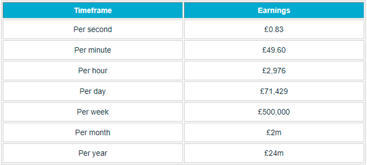 Over the four-and-a-half years that the forward will be at United it is expected that he will have earned around £108 million in wages as well as a £20m signing-on fee.