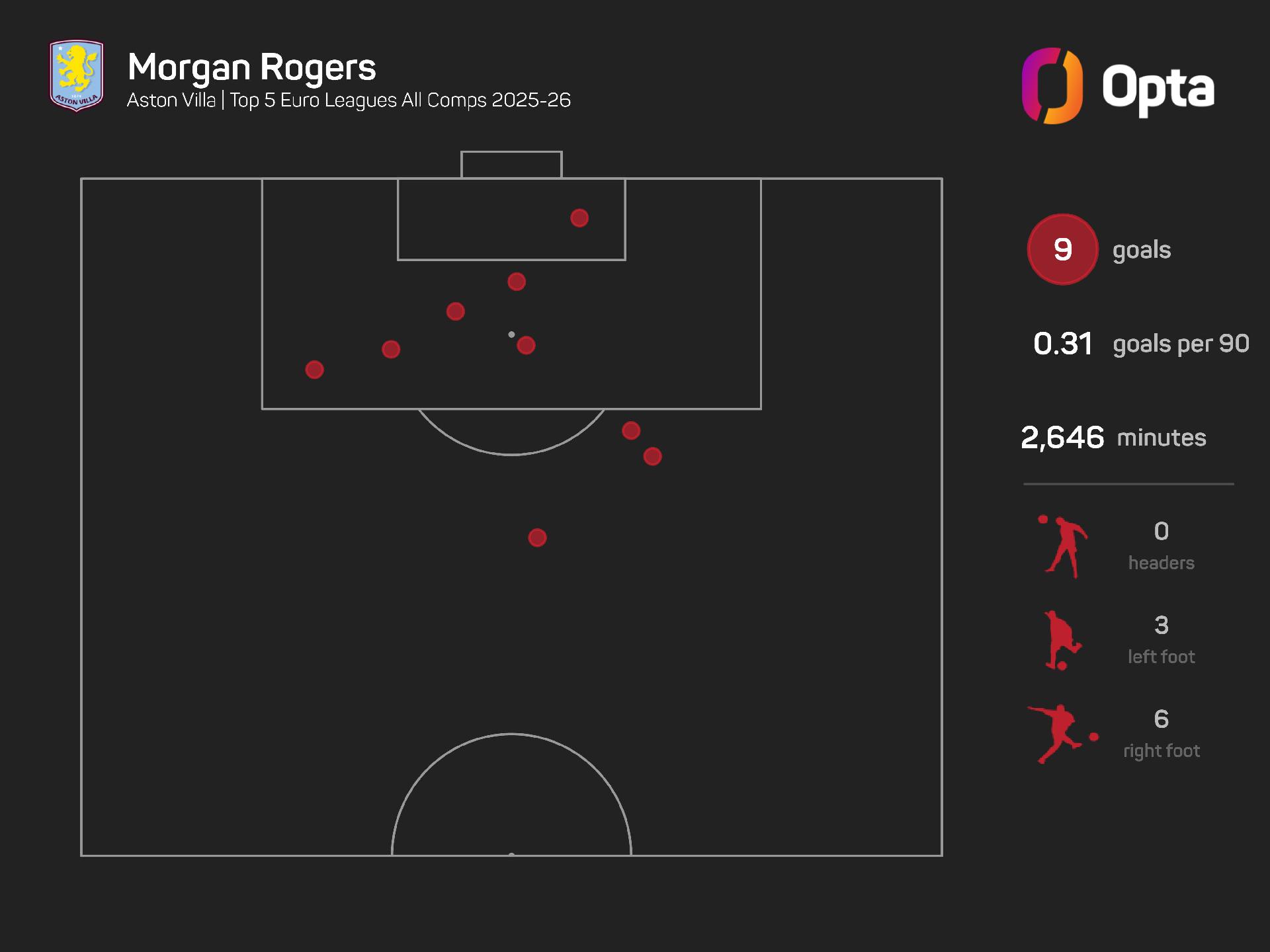 Rogers got Villa's first goal as they came from 2-0 down to defeat Salzburg 3-2 in the Europa League in midweek, taking him to nine goals for the season in all competitions.