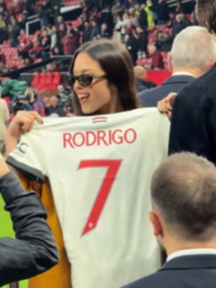 Rodrigo's appearance at Old Trafford - which also saw her have a selfie with Treble winner Dennis Irwin - comes at the end of a bizarre week for the singer.