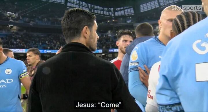 In the post-match madness, Sky Sports footage shows Haaland tapping a fuming Arteta on the shoulder.
