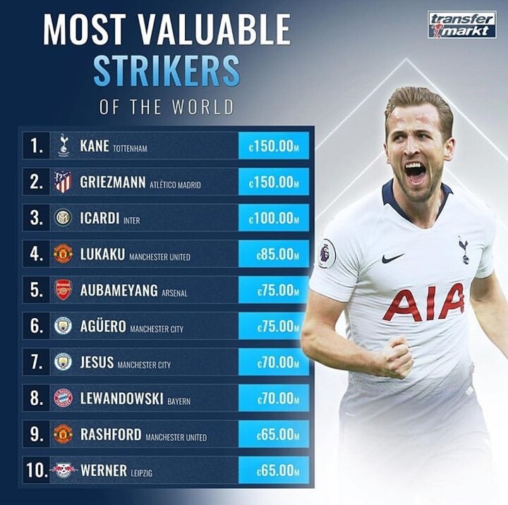 Tottenham star Harry Kane and Atletico star Antoine Griezmann are world's most valuable striker rated by world-leading football website Transfermarkt.