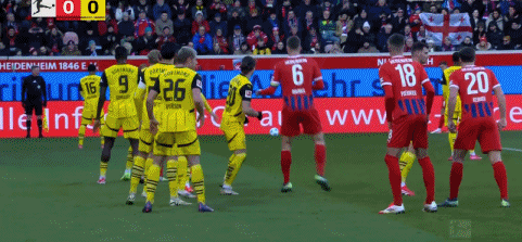 With half an hour on the clock, a set-piece helped in their pursuit of a breakthrough: Anton met Ryerson's corner and juggled the ball twice before threading it through to Guirassy, who picked out the left corner with a low strike from 10 metres (33). Heidenheim only posed a danger on one occasion in the first period, with Kobel making a strong save to deny Krätzig (41). But it would have been disallowed for offside anyway.
