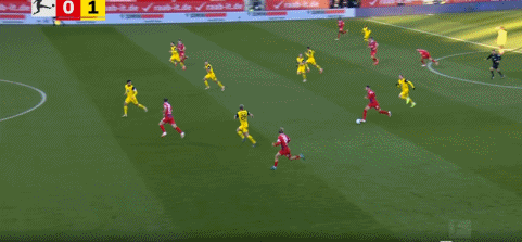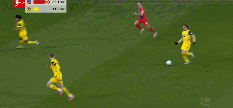 Borussia Dortmund recorded 80% possession in the opening stages, but the action predominantly took place within 20 metres of the halfway line. Only on two occasions did they manage to break through. The first time was in the 09th minute, when Gittens got the better of Traoré down the left flank and hit the side-netting with his deflected shot from a tight angle. The second time was in the 27th minute when Guirassy's header at goal from a Gittens cross was too central.