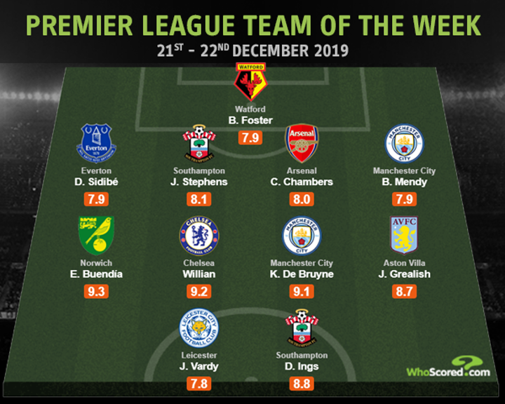 Whoscored released Premier League Team of the week, Willian got the highest rating with 2 goals in the big game against Spurs.