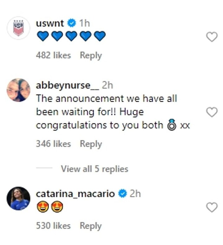 The post received thousands of replies, many of which were written by the couple’s club and national teammates.