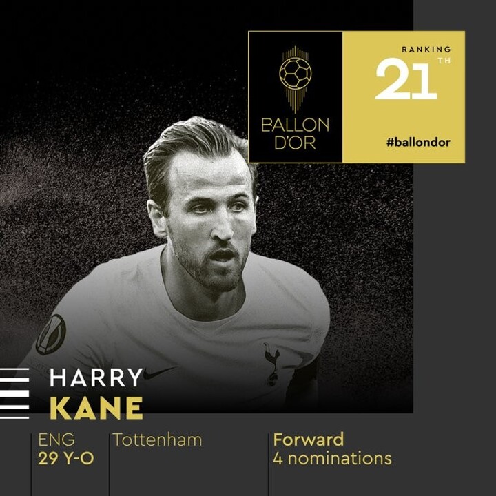Harry Kane ranked at the 21st place for the 2022 Ballon d'Or!