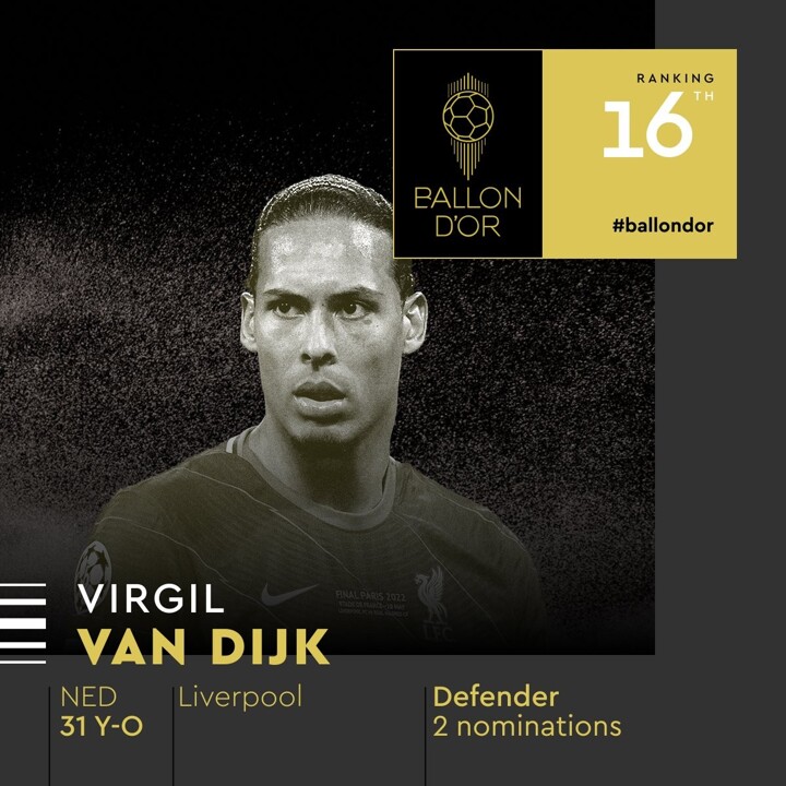 Van Dijk ranked at the 16th place for the 2022 Ballon d'Or!