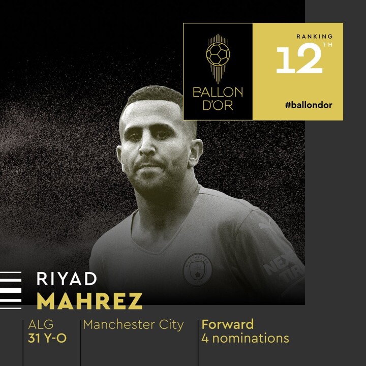 Mahrez ranked at the 12nd place for the 2022 Ballon d'Or!