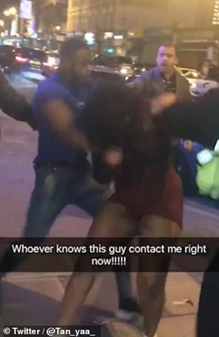 Footage showed Akingbaje grab Miss Mission and assault her outside the club, pictured left and right, and drag her around by her hair