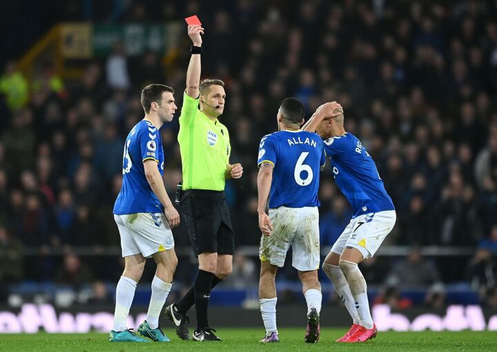 The Toffees are the club with the most red cards this season, having had six different players sent down the tunnel by the referee this campaign.