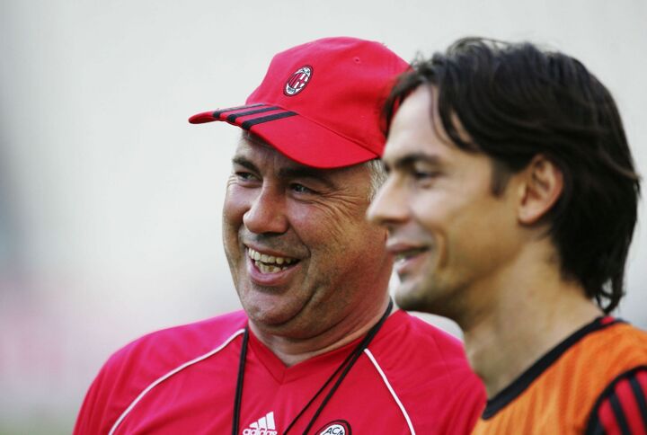 In eight seasons at AC Milan under Ancelotti, Inzaghi won two Champions League titles, one Serie A title, two UEFA Super Cups, one FIFA Club World Cup and one Coppa Italia.
