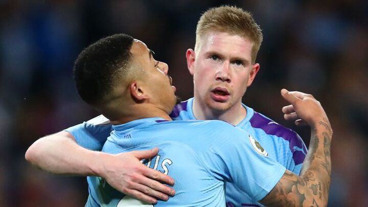 Kevin De Bruyne collects Kyle Walker's pass without breaking his stride and breezes past Caglar Soyuncu as if he is not there. He looks up once, twice, then fires a low cross to the far post for Gabriel Jesus to slide home. It's Manchester City's third goal of the night. It's game over.