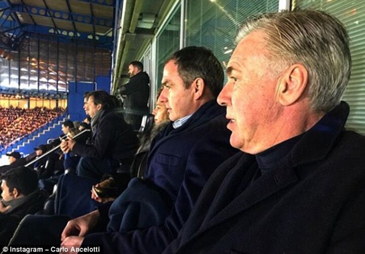Belgium manager Roberto Martinez was also present, keeping an eye on Eden Hazard and Thibaut Courtois. Former Chelsea manager Carlo Ancelotti was another watching on, ex-Swansea boss Paul Clement at his side.