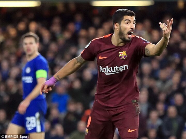 Suarez was not impressed when his penalty appeals were waved away just before Barcelona equalised, and he made his displeasure very clear indeed.