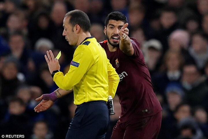 Feeling he had been tripped by Antonio Rudiger, Suarez launched a volley of abuse at the official, topped off with a two-fingered Churchill-esque salute.