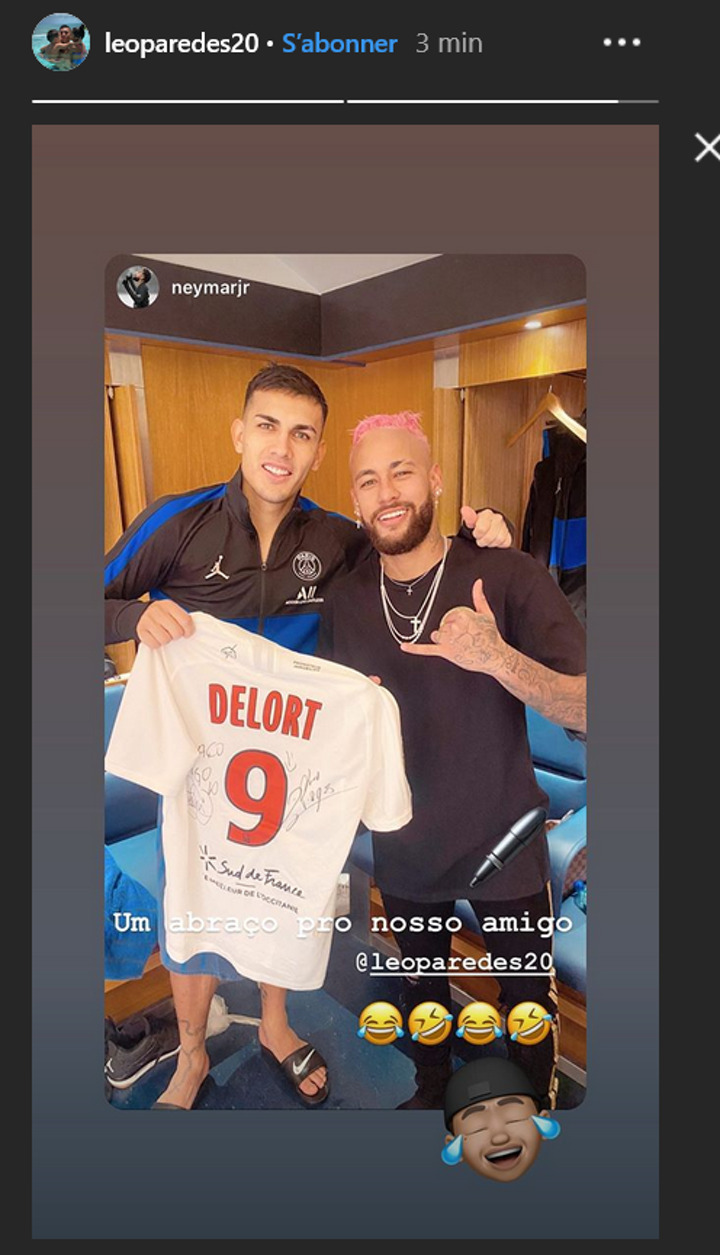 "A hug for our friend," Neymar posted on Instagram after the game as he shared a photo alongside Paredes holding Delort's shirt.