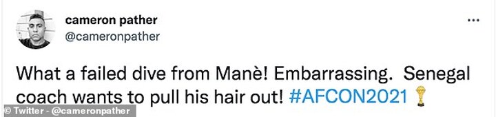 'What a failed dive from Mane,' said one fan. 'Embarrassing. Senegal coach wants to pull his hair out!'