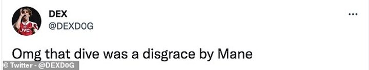 While another added: 'Omg that dive was a disgrace by Mane.'