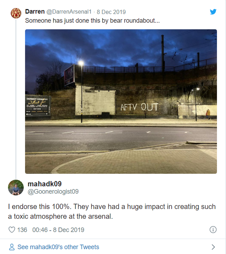 Another said: "I endorse this 100%. They have had a huge impact in creating such a toxic atmosphere at the arsenal."
