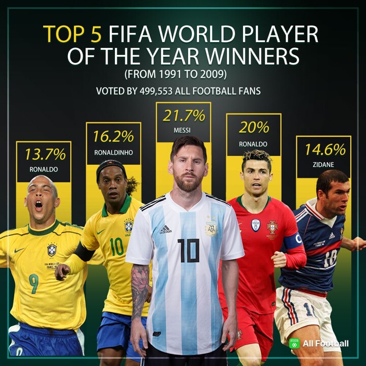 Since 1991, 14 players have won the FIFA World Player of the Year award. Who is the best? We posted a vote yesterday: VOTE: Pick your top 5 FIFA World Player of the Year award winners! And here are the results: