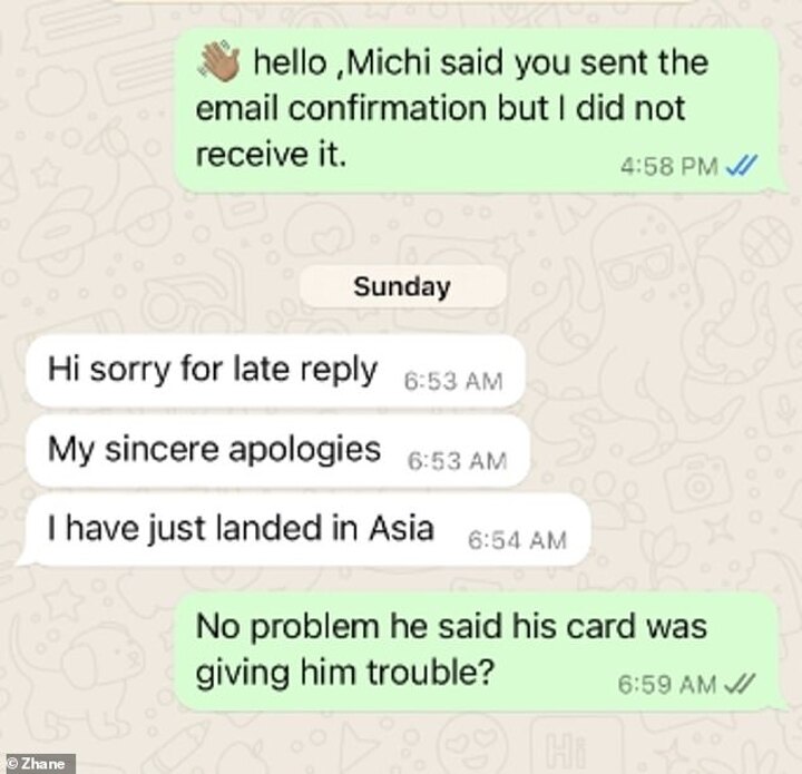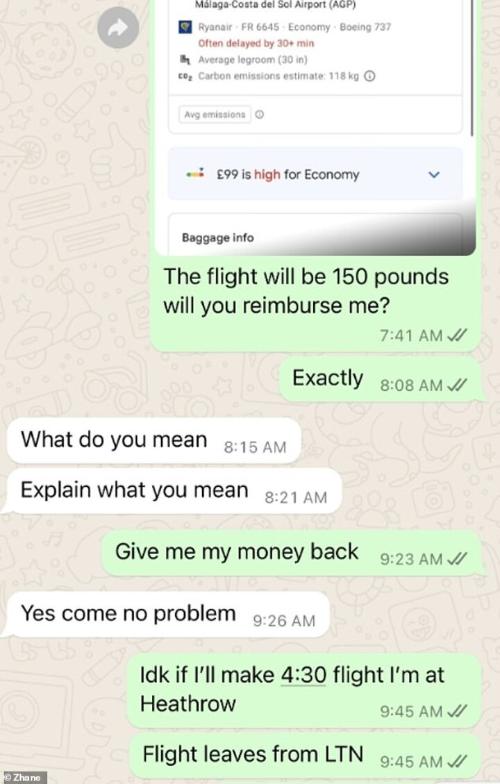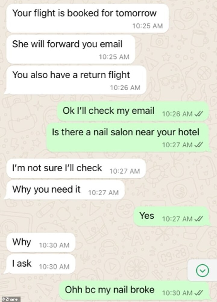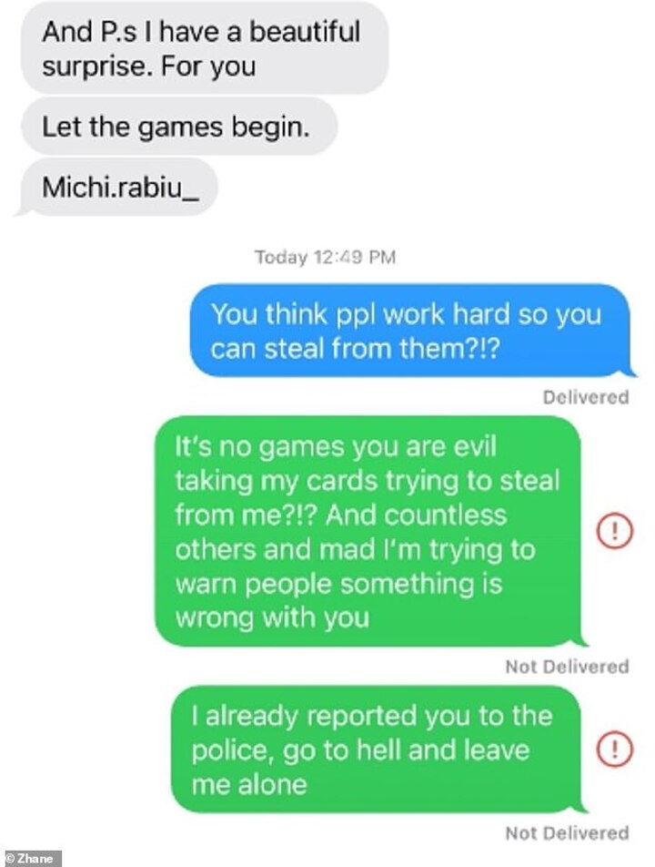 MailOnline had sight of emails, the withdrawn amounts from Zhane's bank account, and has seen private WhatsApp messages between the pair to corroborate the allegations.