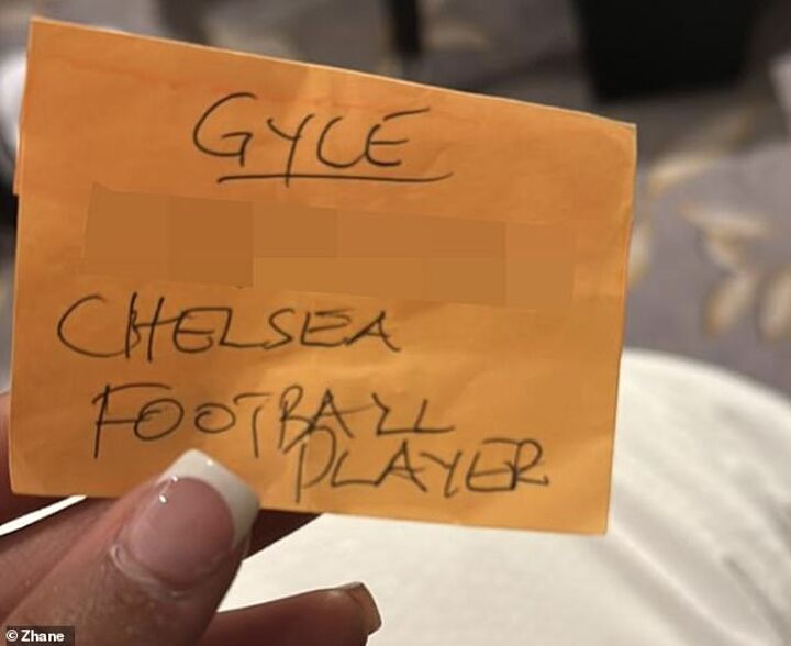 When she returned to the hotel a valet handed her a yellow Post-It note, seen by MailOnline, which had a mobile phone number written in black biro and 'Gyle Chelsea football player'.